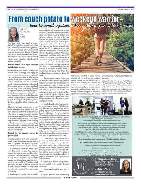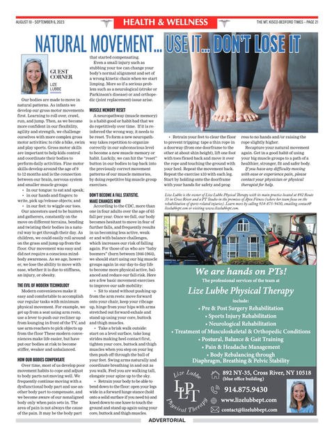 Lize is a regular contributor to local newspapers throughout Northern Westchester, including Lewisboro, Somers, and Yorktown, where she authors a monthly Health & Wellness column.